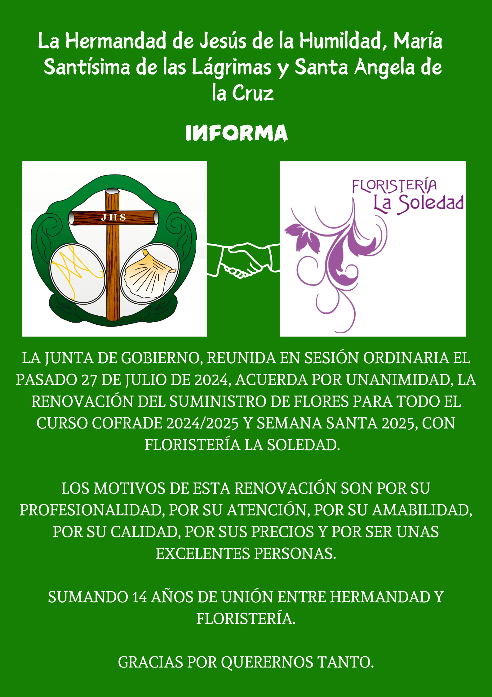 Hermandad de Jesús de la Humildad, María Santísima de las Lágrimas y Santa Ángela de la Cruz