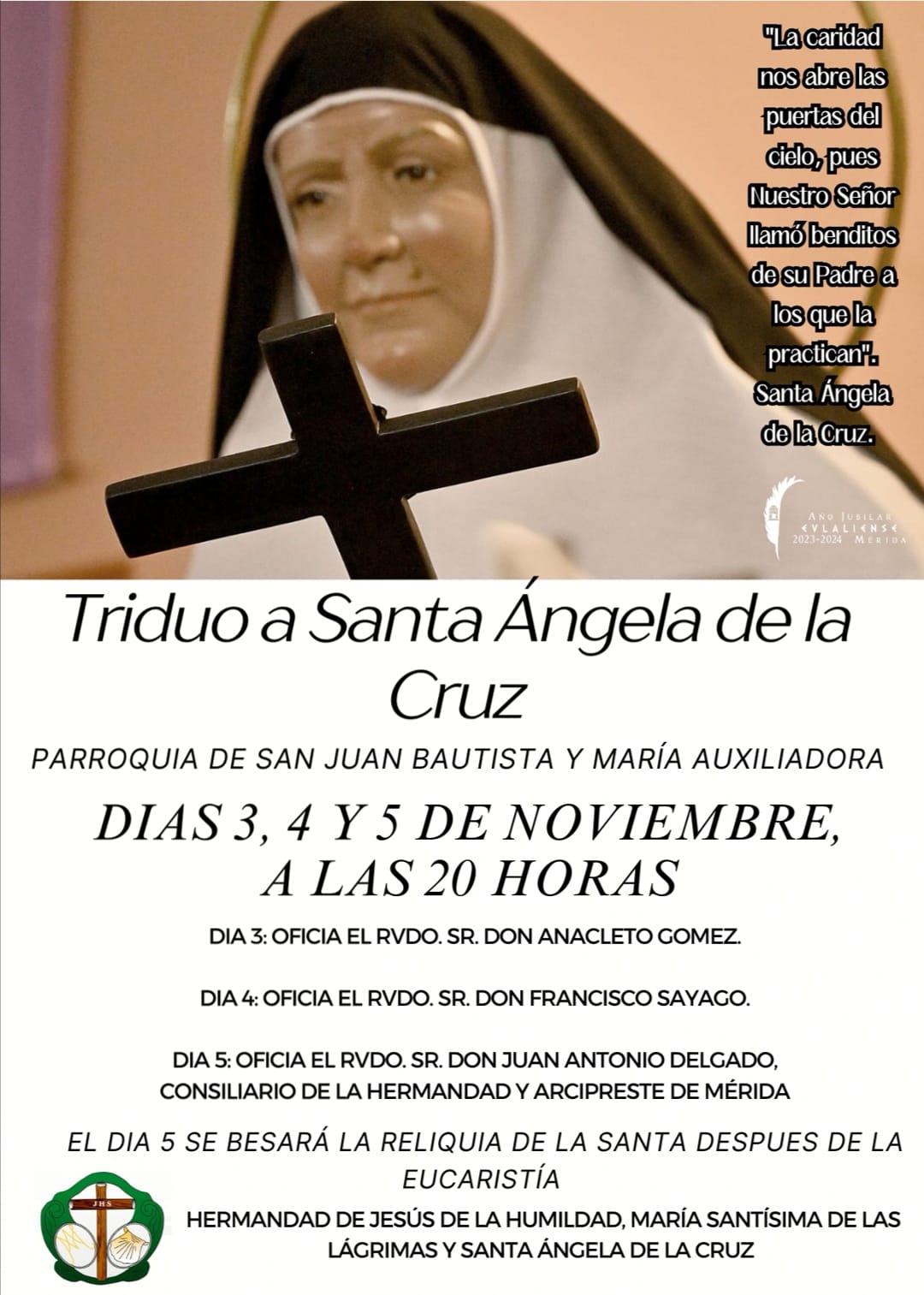 Los próximos días 3, 4 y 5 de noviembre, realizamos el triduo a nuestra tercera titular, Santa Ángela de la Cruz. Contaremos dos sacerdotes que nos visitan durante este Triduo, […]