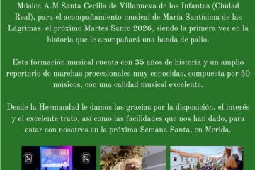 El acompañamiento musical este año corre a cargo de la Banda de Cornetas y Tambores de la Oje de Mérida.