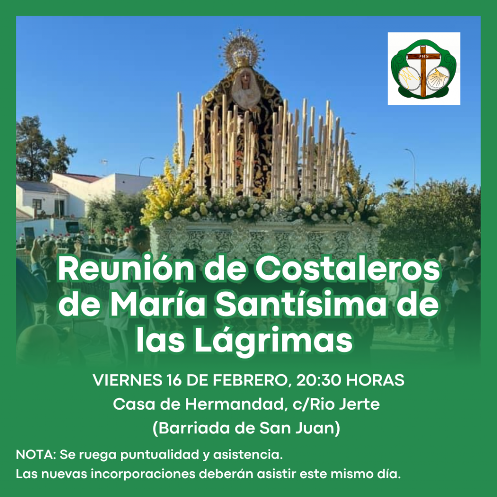 Nuestras cuadrillas de portadoras y costaleros, ya tienen fijada la fecha de la primera reunión para realizarse el tallaje, elaborar el calendario de ensayos, informarse de las novedades, etc.