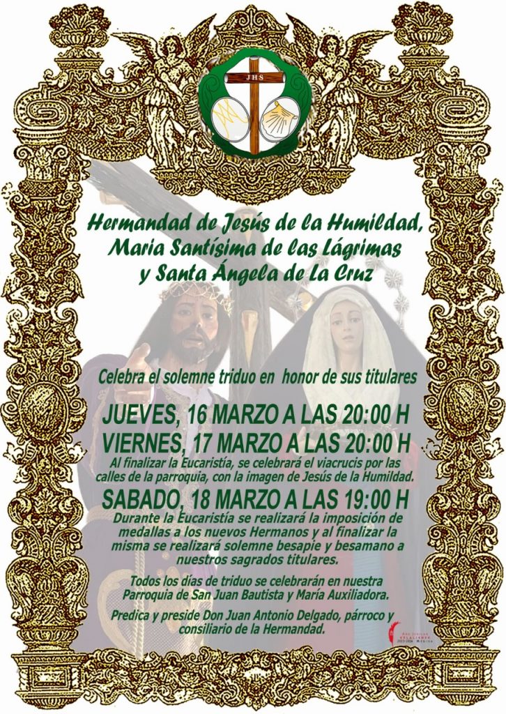 El día 17, al finalizar la Eucaristía se procederá a realizar el Vía crucis con la imagen de Jesús de la Humildad, por las calles de la Parroquia, se podrán adquirir velas en la puerta de la Parroquia al módico precio de 1 euro.